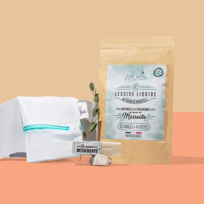 Pack recharge (soit environ 6 mois) = 132 lavages X2 (= 264 lavages) + 1 gomme détachante